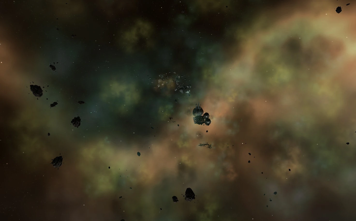 Hier sind auch jede Menge Veldspar Asteroiden vorhanden ( Anzahl > 100, Range 18 - 50km)